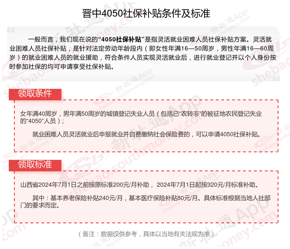 二、2025年晋中4050社保补贴标准及条件(4050社保补贴多少钱?)