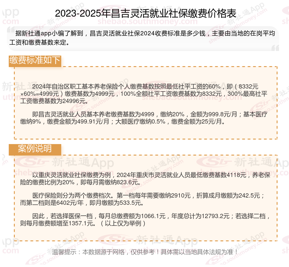 二、2025年昌吉灵活就业社保缴费基数及比例最新消息