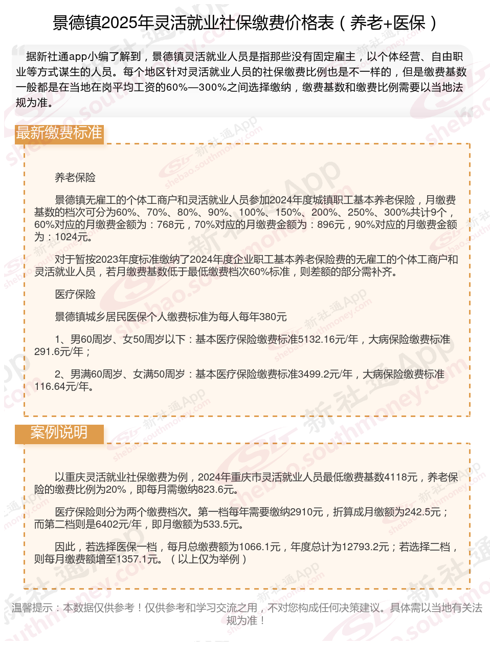 一、2025年景德镇灵活就业社保缴费基数、比例最新消息