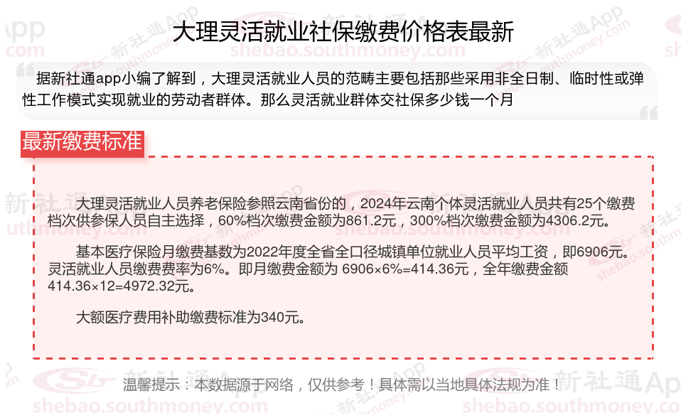 一、2025年大理灵活就业社保缴费标准是多少钱一个月呢?