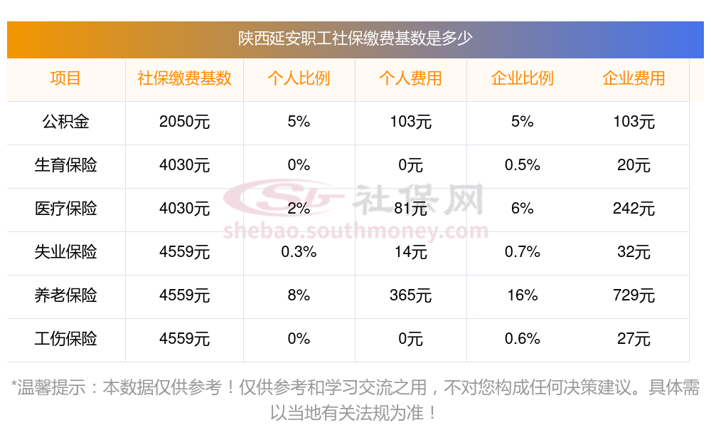 2025年陕西延安社保缴费多少钱?下表是2024-2025年陕西延安社保费用明细参考,新社通app-社保缴费查询工具提供的最新数据如下: