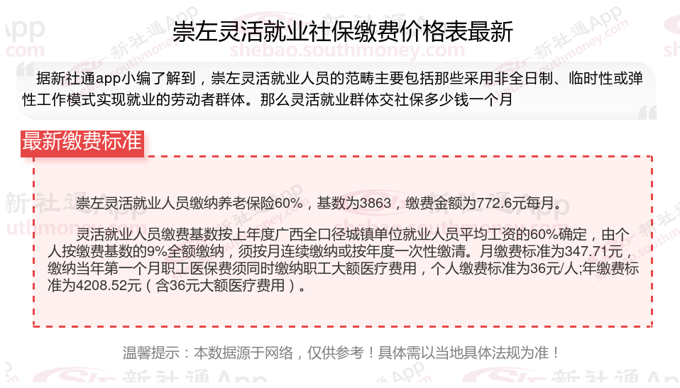 2025年?崇左灵活就业社保缴费标准表崇左灵活就业社保多少钱一个月?