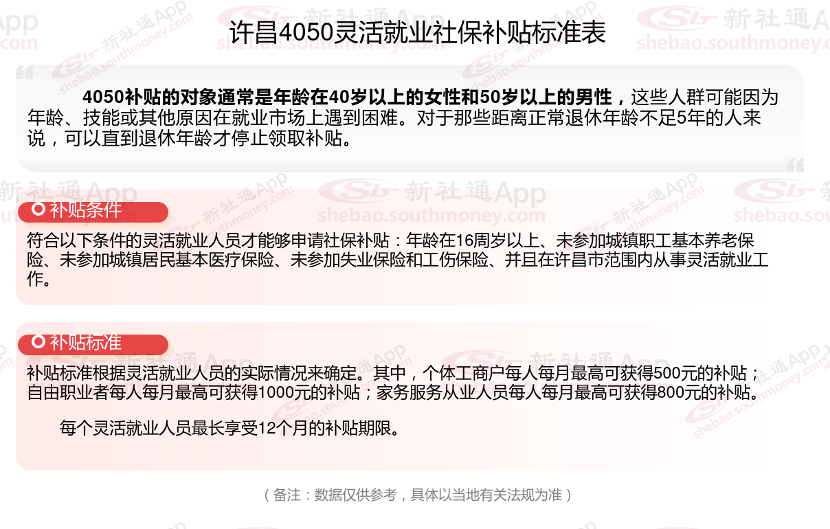 二、2025年许昌4050社保补贴标准,最新领取条件来了
