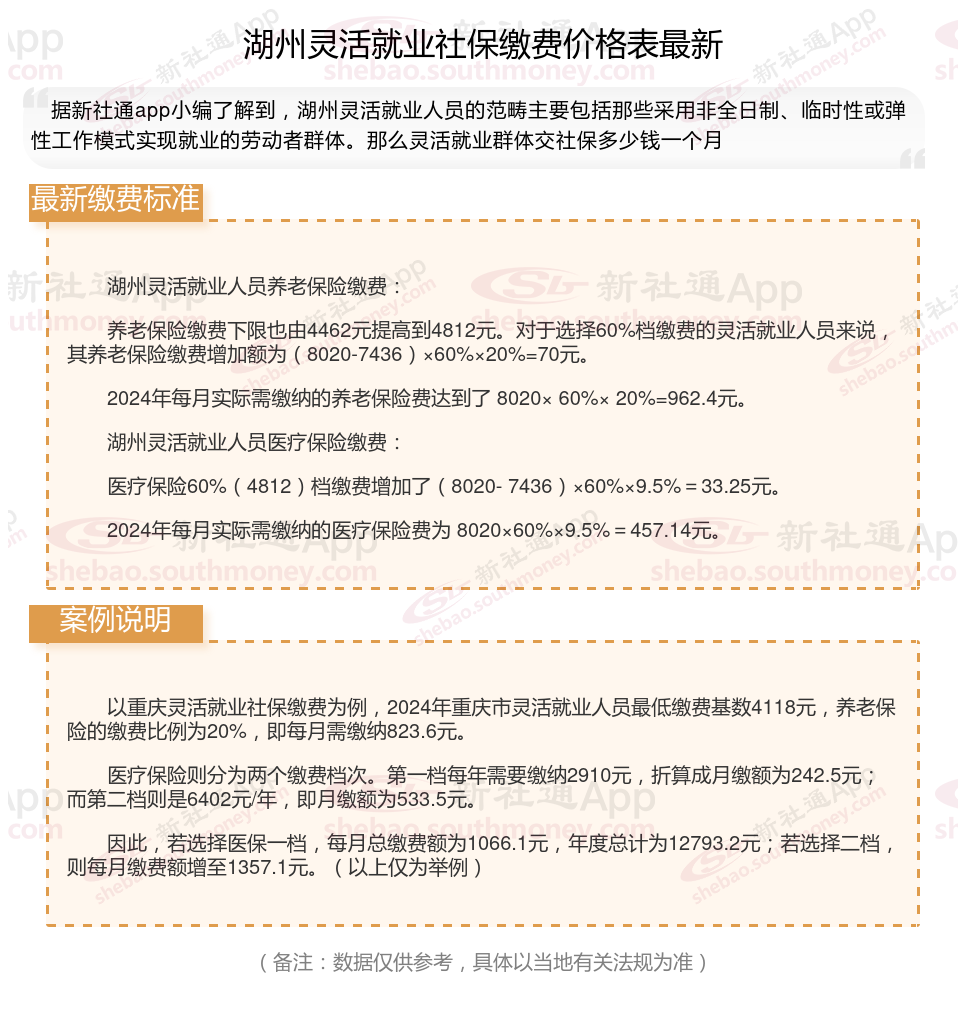 湖州灵活就业社保交多少钱?最新湖州灵活就业人员社保养老缴费标准明细来了,根据新社通app-社保缴费查询工具提供的2025社保缴费标准详情数据: