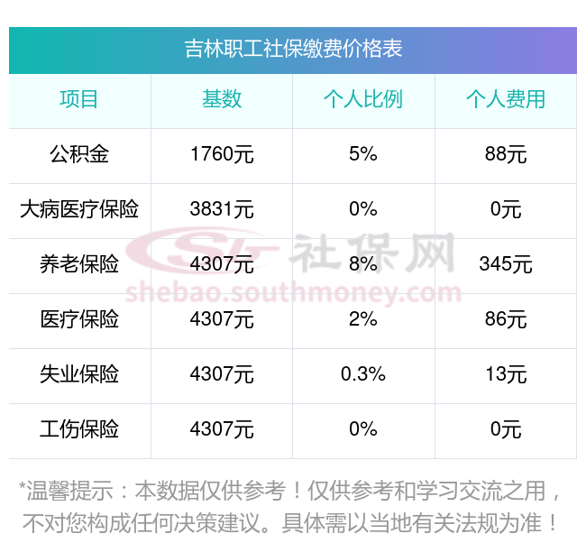 五险一金扣多少?吉林五险一金扣多少钱?下表是2024-2025年吉林社保费用明细参考,新社通app-社保缴费查询工具提供的最新数据如下: