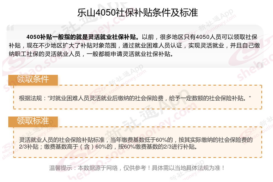 二、2025年乐山4050社保补贴标准是多少,最新4050社保补贴领取条件来了