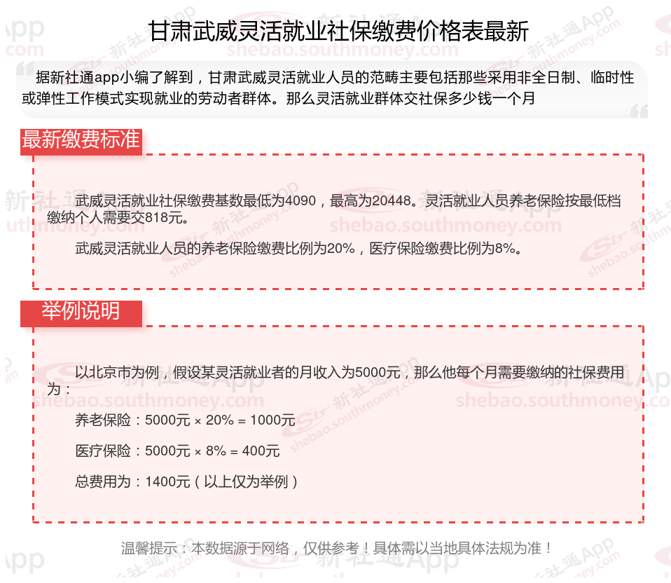 据新社通app数据显示,甘肃武威灵活就业养老缴费基数明细如下: