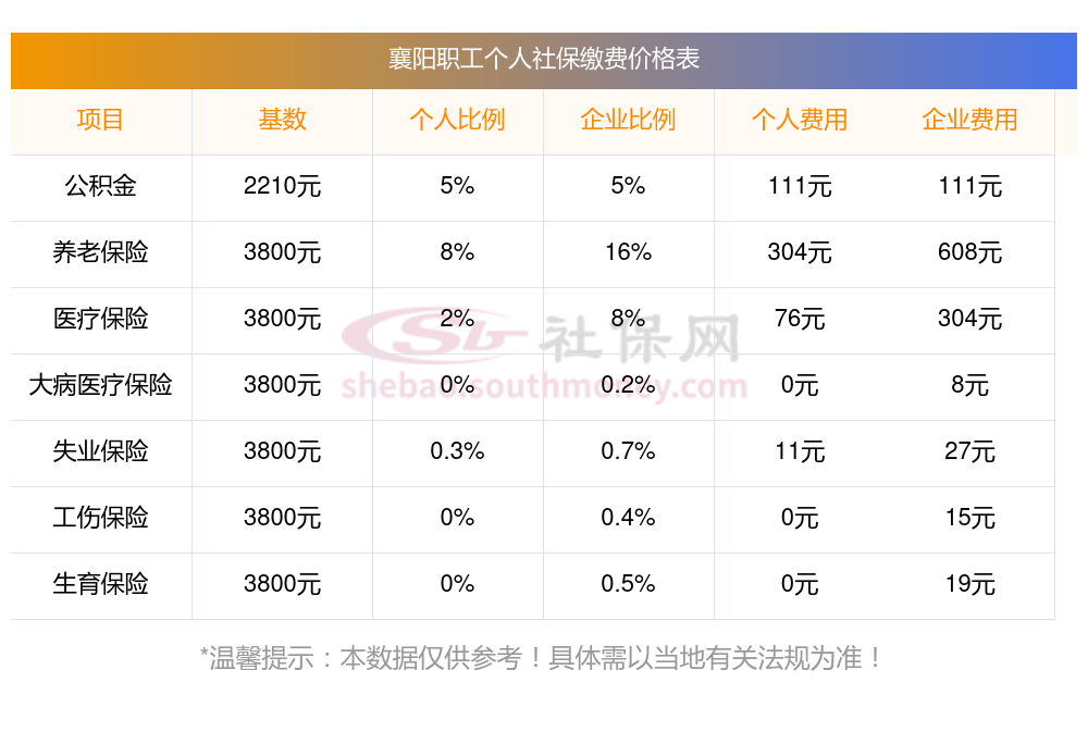 襄阳职工和公司社保各交多少钱