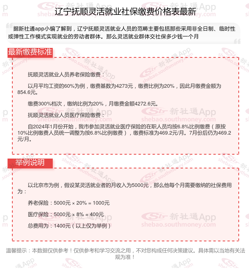 2025辽宁抚顺灵活就业社保缴纳基数是多少?辽宁抚顺灵活就业人员社保交15年领多少?根据新社通app-社保缴费查询工具提供的2025社保缴费标准详情数据: