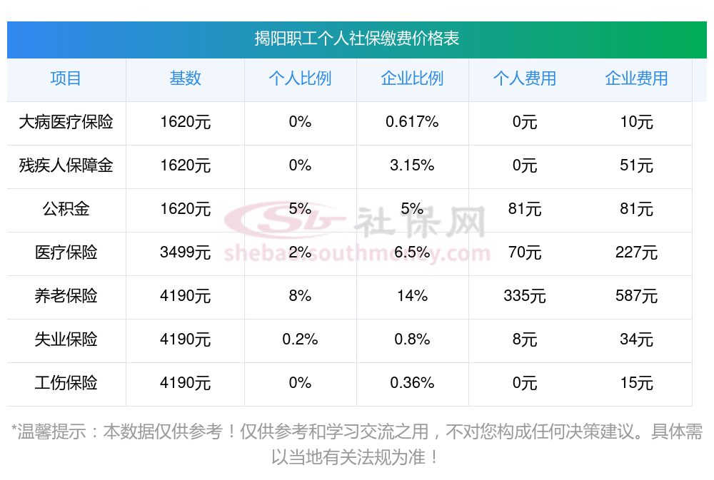 据新社通app显示,揭阳社保缴费基数2025最新标准如下: