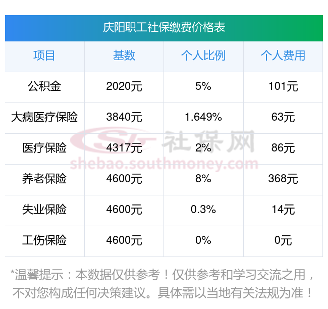 二、2025年庆阳职工社保缴费基数是多少钱一个月?职工社保缴纳标准最新是多少?