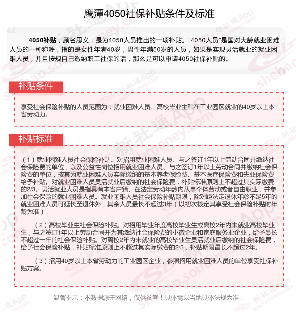 二2025年鹰潭灵活就业4050社保补贴标准及条件是什么