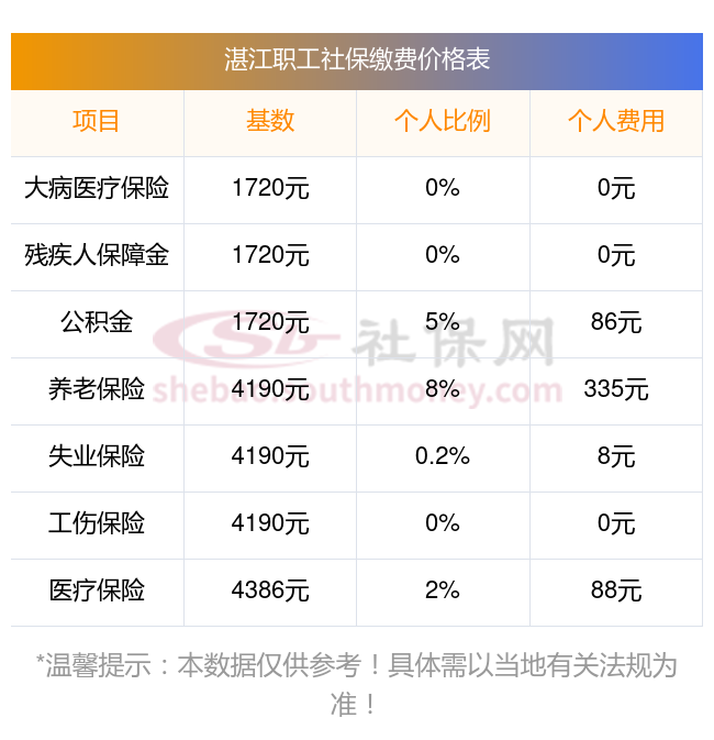 二、湛江职工社保缴费多少钱一个月,2025年职工和公司社保各交多少钱?