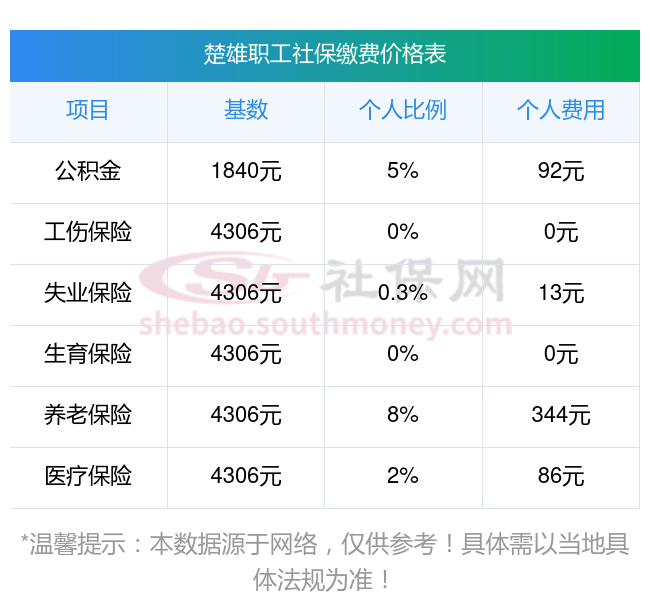 一、楚雄职工社保缴费多少钱一个月,2025年职工和公司社保各交多少钱?