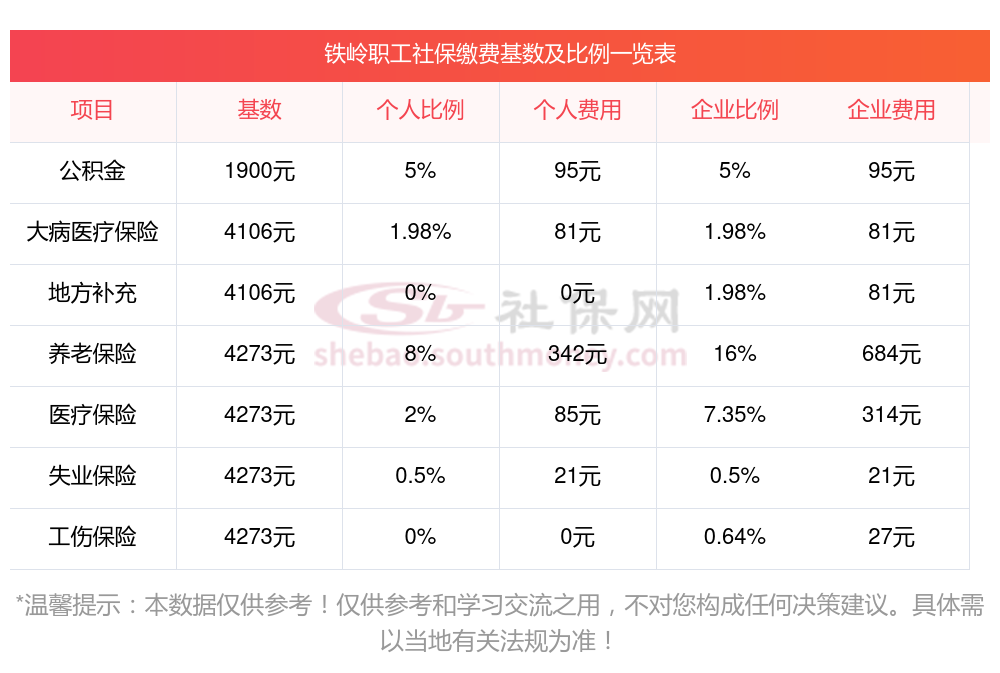 铁岭社保缴纳基数标准最新来了 2025年铁岭社保基数标准最新个人缴费比例是多少?根据新社通app-社保缴费查询工具提供的最新数据如下: