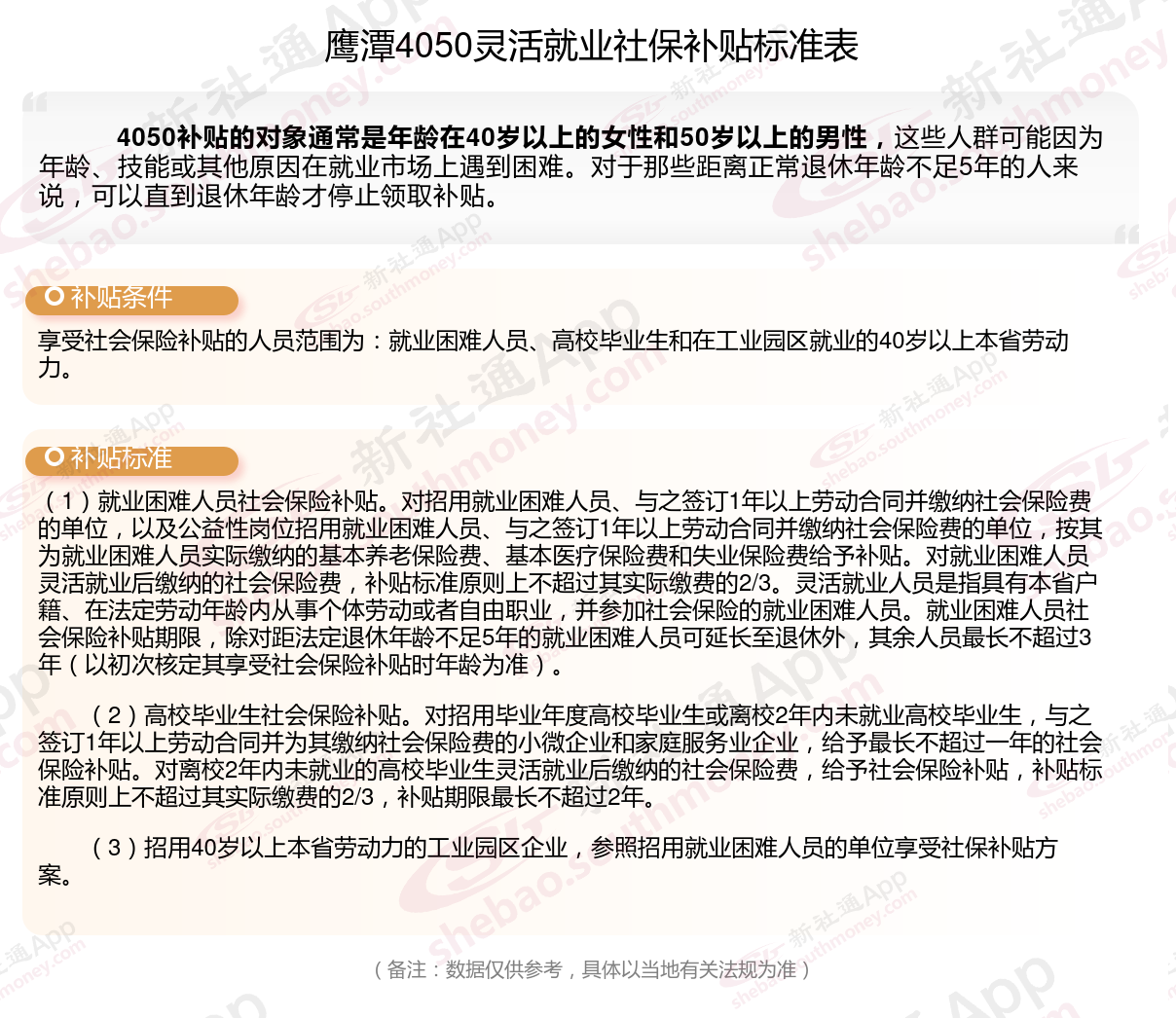 二、鹰潭4050社保补贴新规2025年最新标准,2025年鹰潭4050社保补贴条件是什么?
