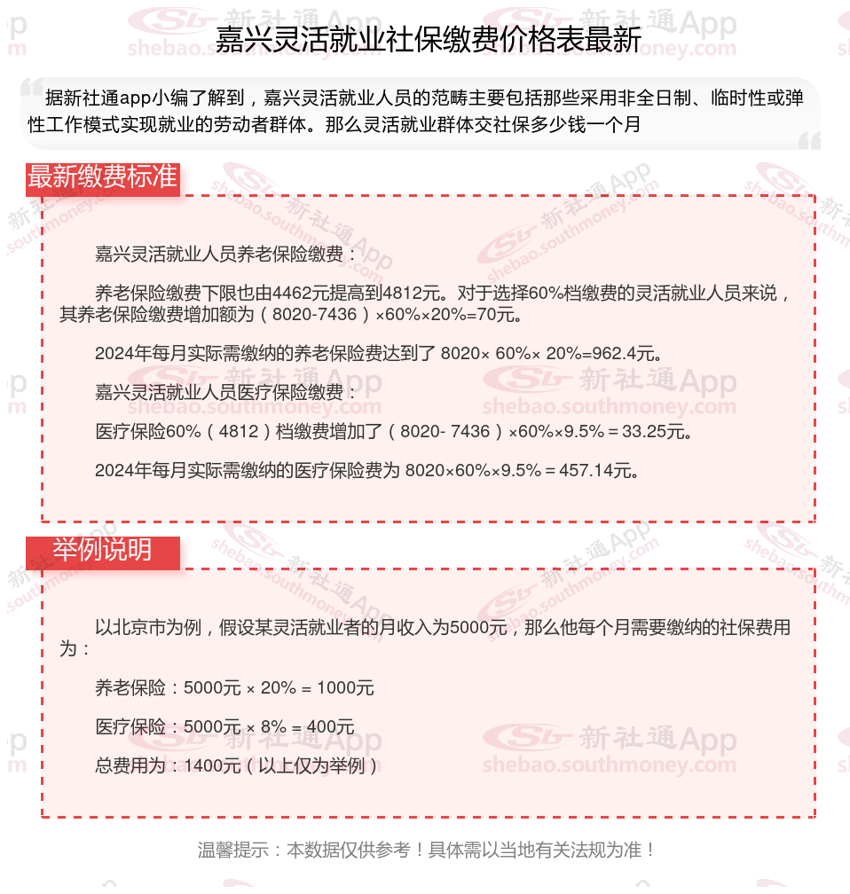据新社通app数据显示,2024-2025年嘉兴灵活就业人员养老保险的缴费标准是根据缴费基数来确定的:
