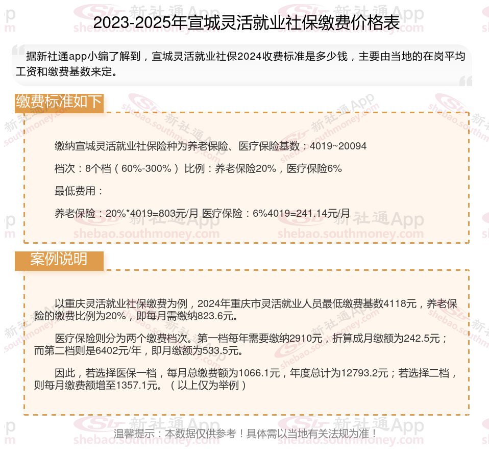 一、宣城2025年灵活就业社保缴费基数及比例