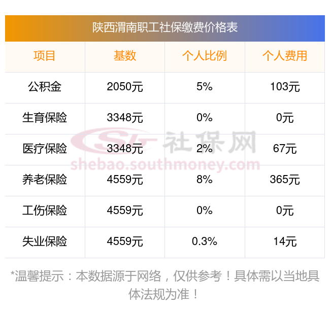据新社通app显示,陕西渭南社保缴费基数2025标准,(社保最低一个月要交多少钱)陕西渭南社保费用如下: