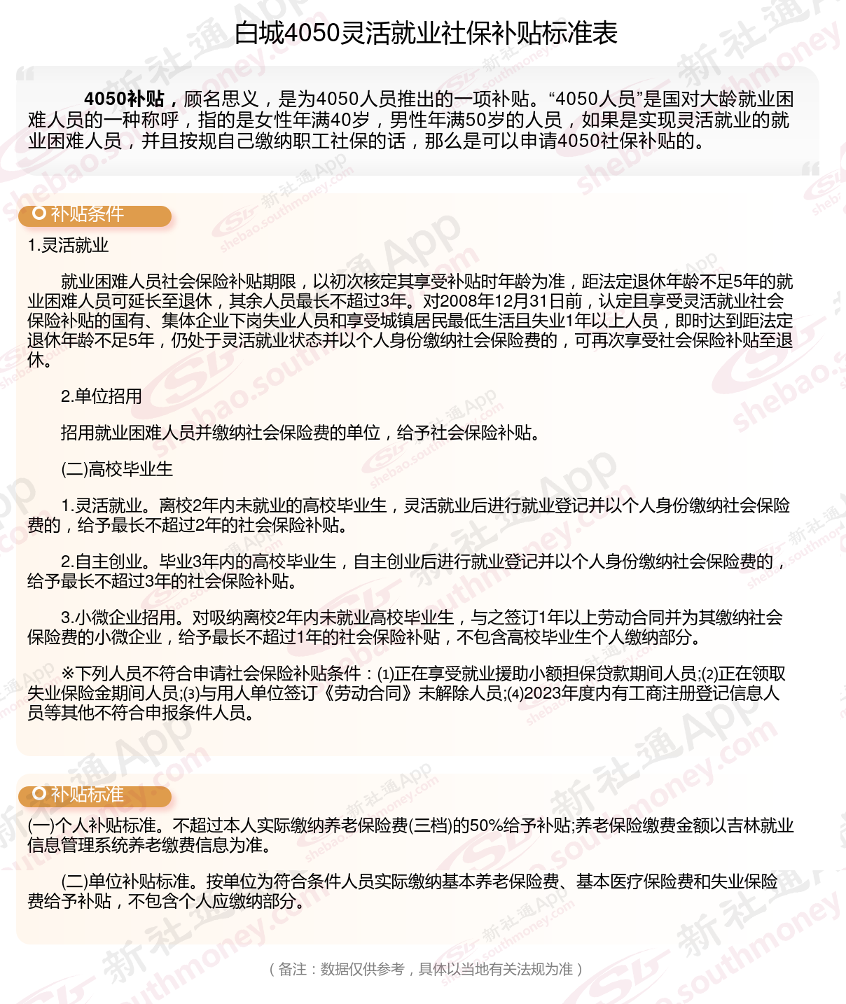 二、2025年白城灵活就业4050社保补贴标准及条件是什么