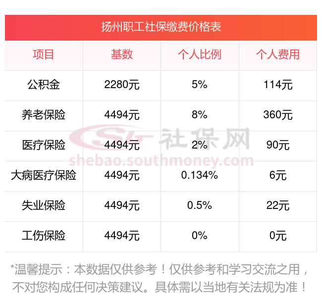 据新社通app显示,扬州社保缴费基数2025年标准,(社保最低一个月要交多少钱)扬州社保费用如下:
