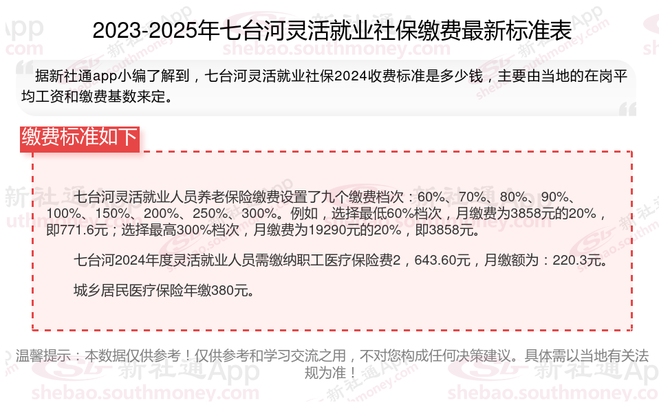 一、2025年七台河灵活就业社保缴费标准是多少钱一个月呢?