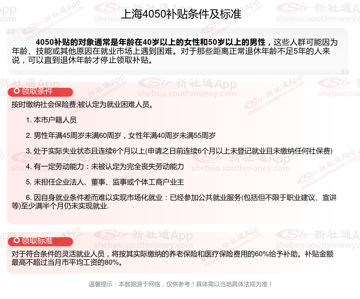 二、2025年上海灵活就业4050社保补贴标准及条件是什么