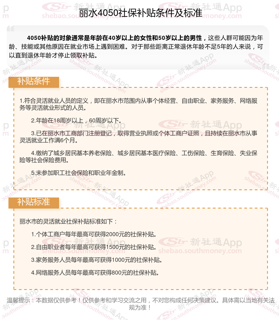 一、2025年丽水灵活就业4050社保补贴标准及条件是什么