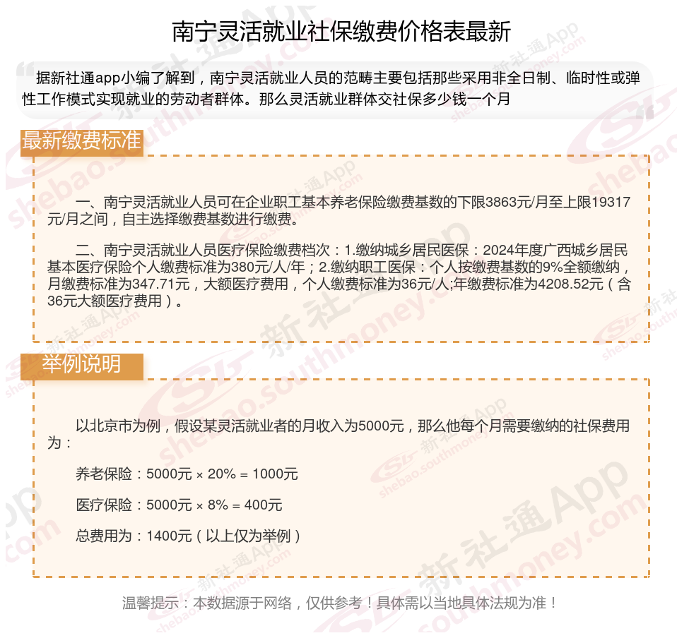 南宁灵活就业社保交多少钱?最新南宁灵活就业人员社保养老缴费标准明细来了,根据新社通app-社保缴费查询工具提供的2025社保缴费标准详情数据: