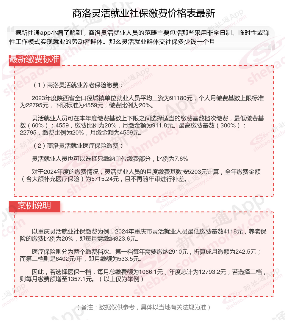 随着经济社会的不断发展,灵活就业群体不断地日益壮大,其社保缴费问题也愈发受到关注。那么2025年商洛灵活就业人员社保交多少钱,你了解2025年商洛灵活就业人员社保缴费基数及比例吗,接下来随新社通APP小编一起来看看。