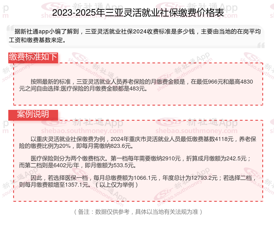 二、三亚2024年灵活就业社保缴费基数及比例最新消息
