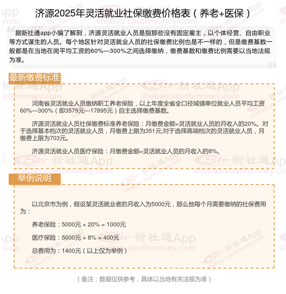 一、2025年济源灵活就业社保缴费基数、比例最新消息