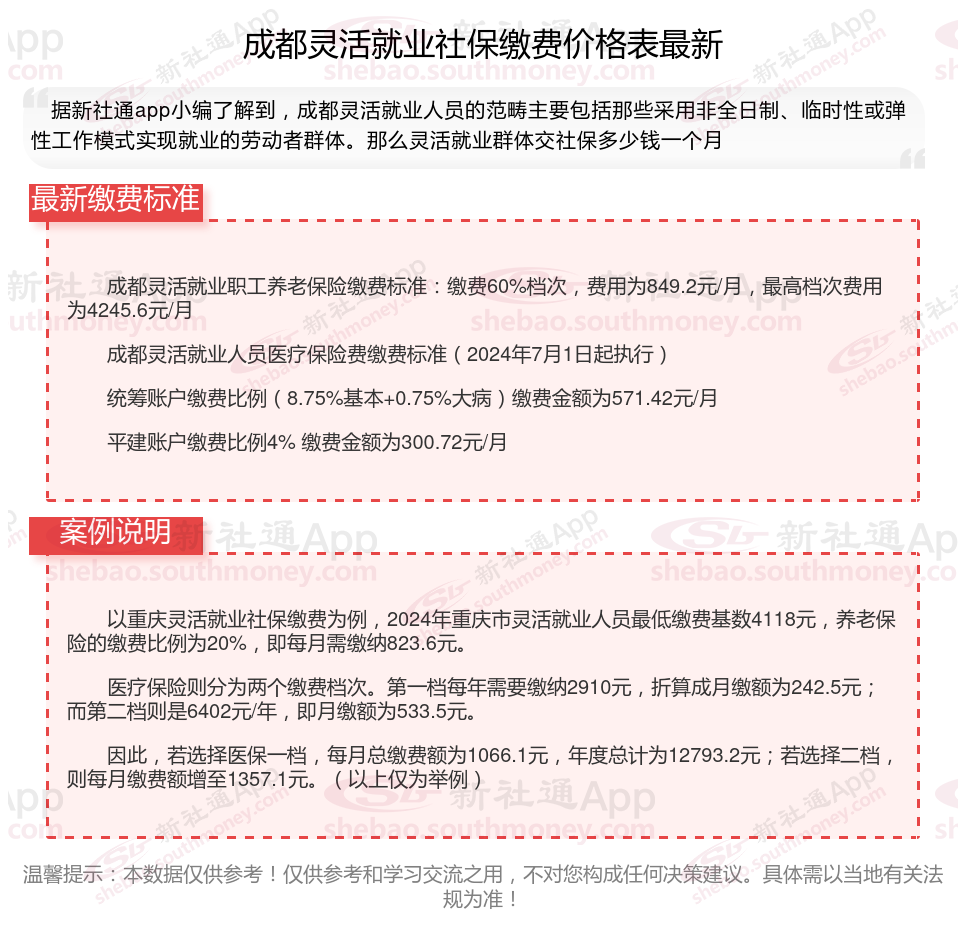 2025年成都灵活就业人员社保交多少钱,你了解2025年成都灵活就业人员社保缴费基数及比例吗,据新社通小编了解到,灵活就业社保缴费标准每年都会有所调整,主要体现在缴费基数和缴费比例上。接下来随新社通APP小编一起来看看。