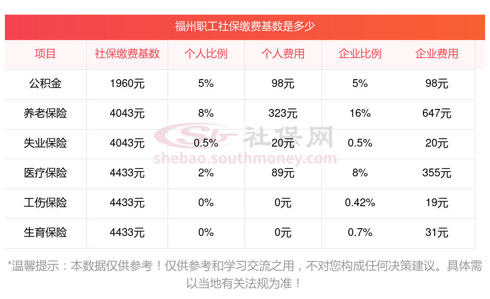 2025年社保缴费价目表,下面和新社通APP一起来了解下2024-2025年福州最低配社保费用明细参考,新社通app-社保缴费查询工具提供的最新数据如下: