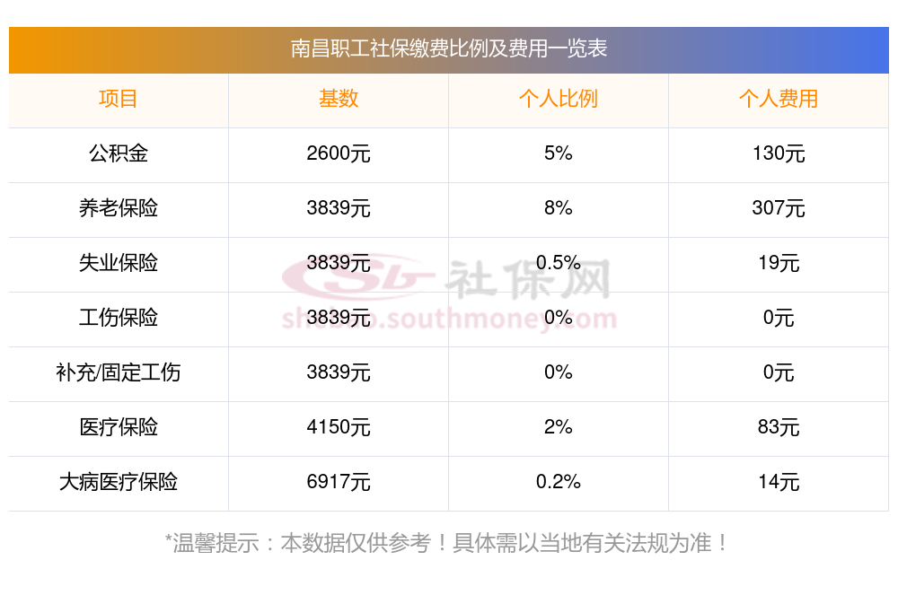 五险一金扣多少?你知道吗?下表是2024-2025年南昌社保费用明细参考,新社通app-社保缴费查询工具提供的最新数据如下: