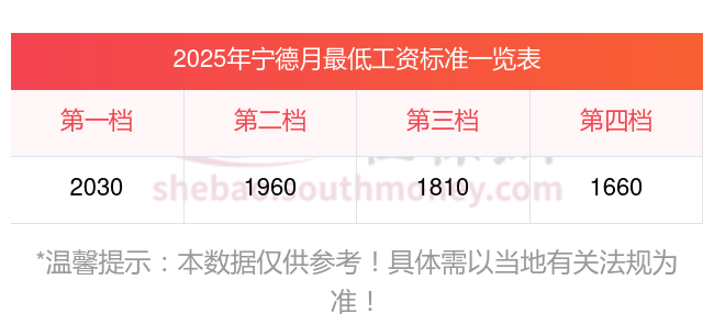 宁德最低工资标准是多少?宁德最低工资标准如下: