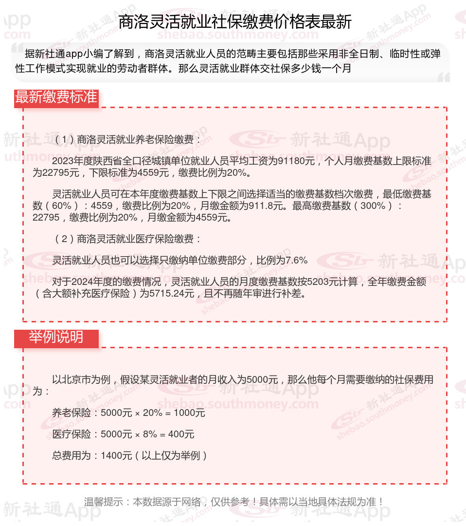 2025年商洛灵活就业人员社保需要交多少钱?灵活就业社保通常只需缴纳养老和医疗两项(部分地区可自愿选缴失业险),其他险种无需强制缴纳。灵活就业社保缴费满15年后,退休后可领取养老金,避免老年无收入来源。接下来随新社通APP小编一起来看看商洛灵活就业人员社保缴费的内容。