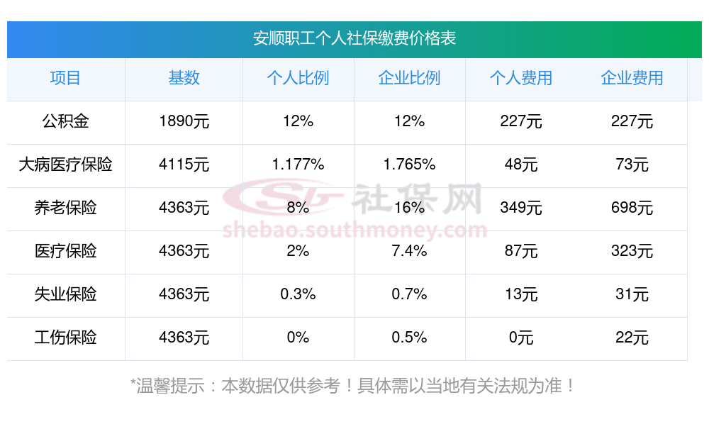 据新社通app显示,安顺社保缴费基数2025标准,(社保最低一个月要交多少钱)安顺社保费用如下: