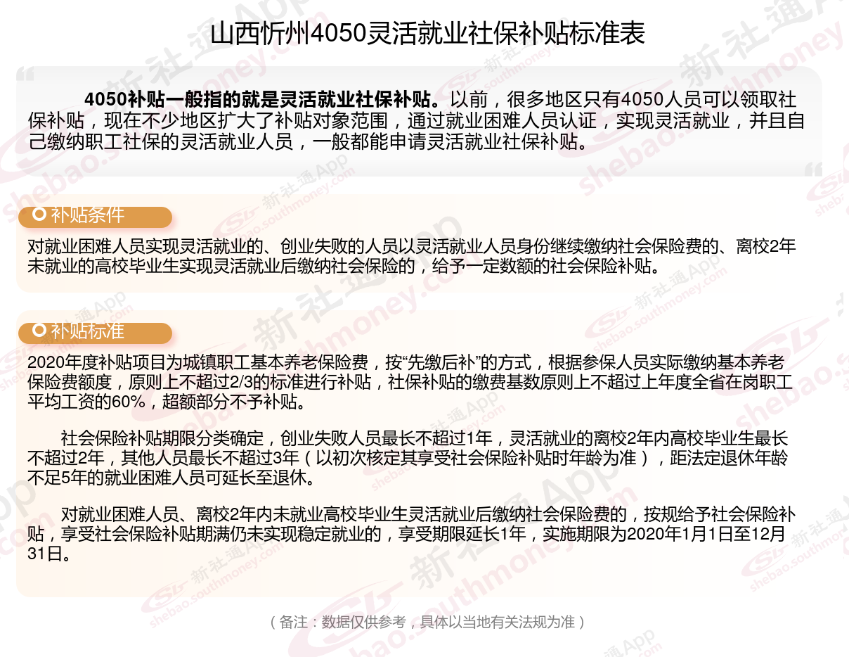 二、山西忻州4050社保补贴多少钱一个月?山西忻州4050社保补贴2025年最新标准是多少?