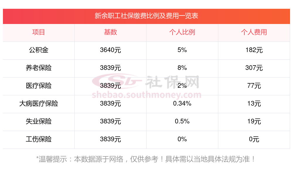 新余五险一金交多少钱一个月?下表是2024-2025年新余社保费用明细参考,新社通app-社保缴费查询工具提供的最新数据如下: