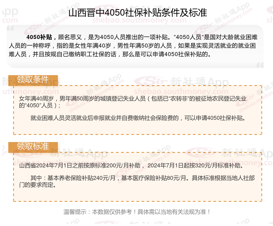 二、2025年山西晋中4050社保补贴标准及条件(4050社保补贴多少钱?)