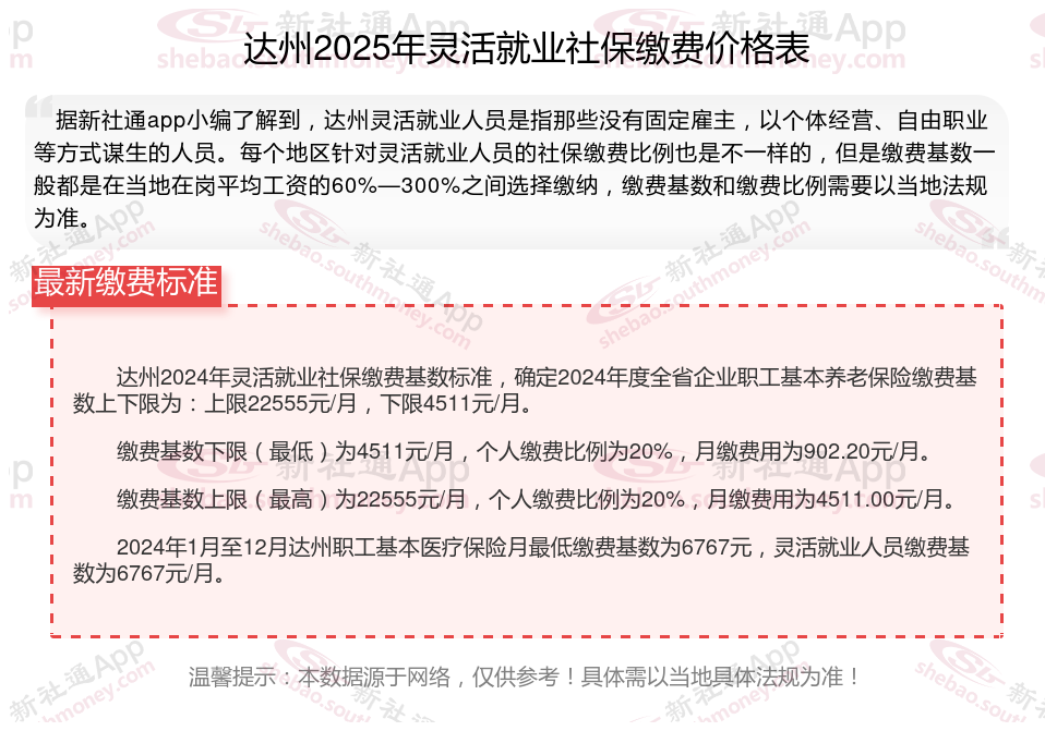 一、2025年达州灵活就业社保缴费标准表是多少?具体如下:
