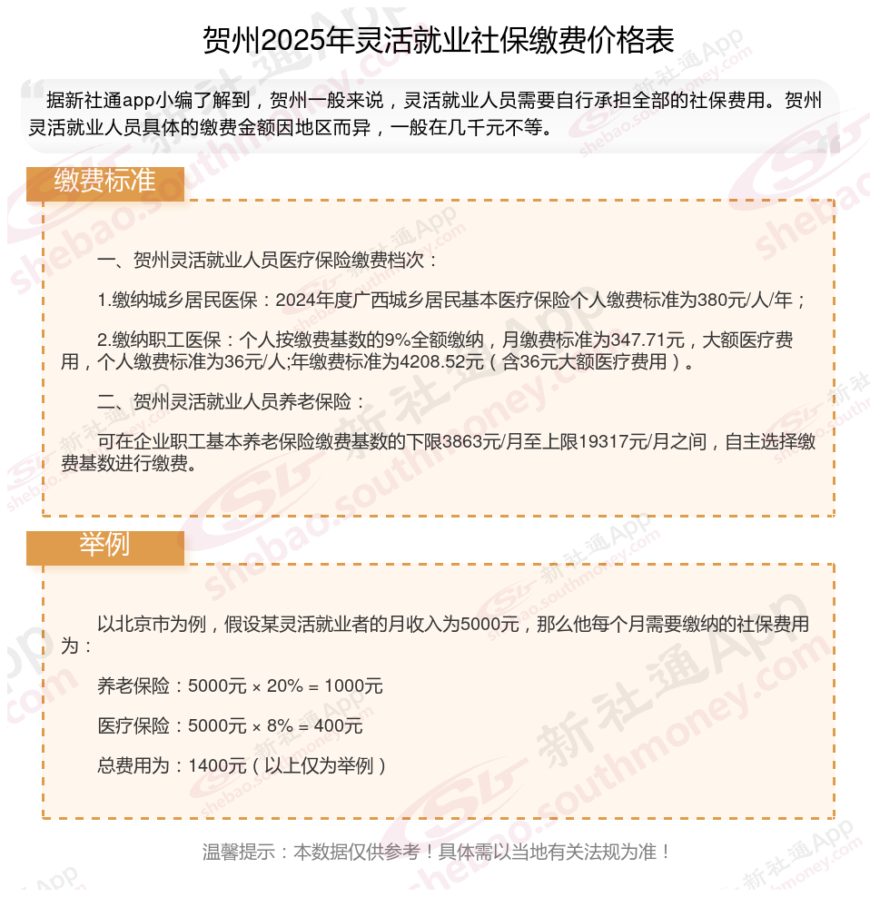 贺州灵活就业社保多少钱一个月?