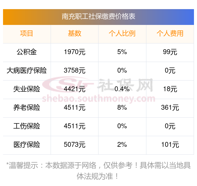 南充社保最低基数2025是多少,下表是2024-2025年南充社保费用明细参考,新社通app-社保缴费查询工具提供的最新数据如下: