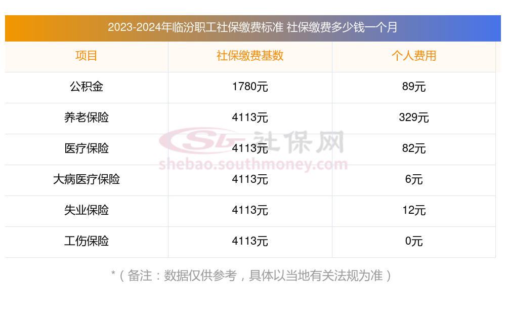 2025年临汾社保缴费多少钱?下表是2024-2025年临汾社保费用明细参考,新社通app-社保缴费查询工具提供的最新数据如下: