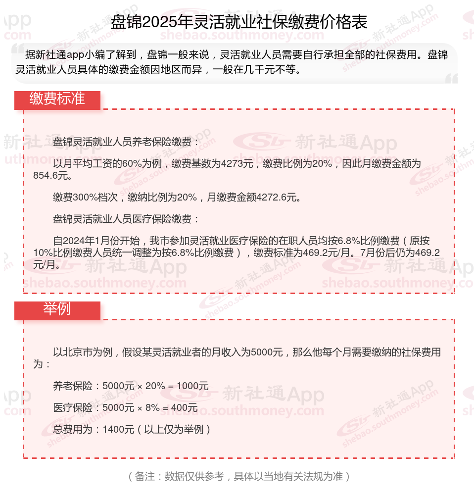 据新社通app数据显示,盘锦灵活就业养老保险缴费基数2024-2025年最新标准如下: