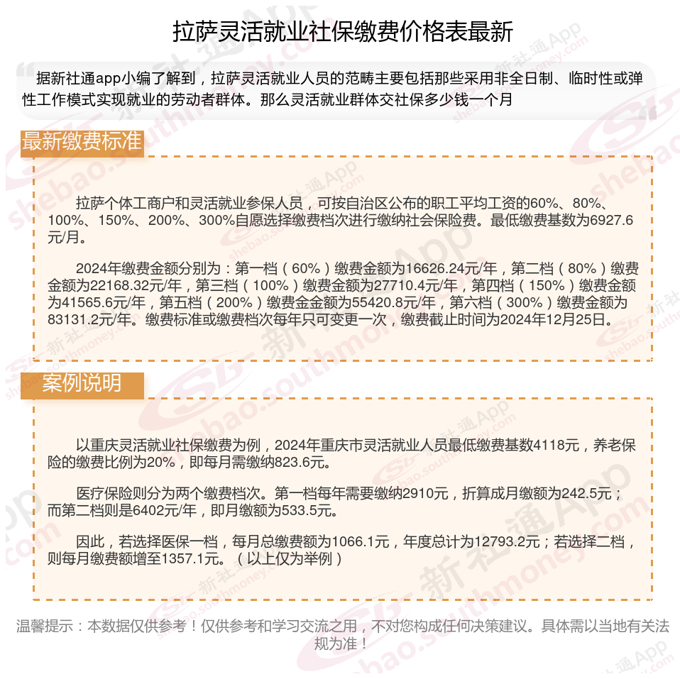 拉萨灵活就业人员基本养老保险缴费基数暂按不低于6927.6元;