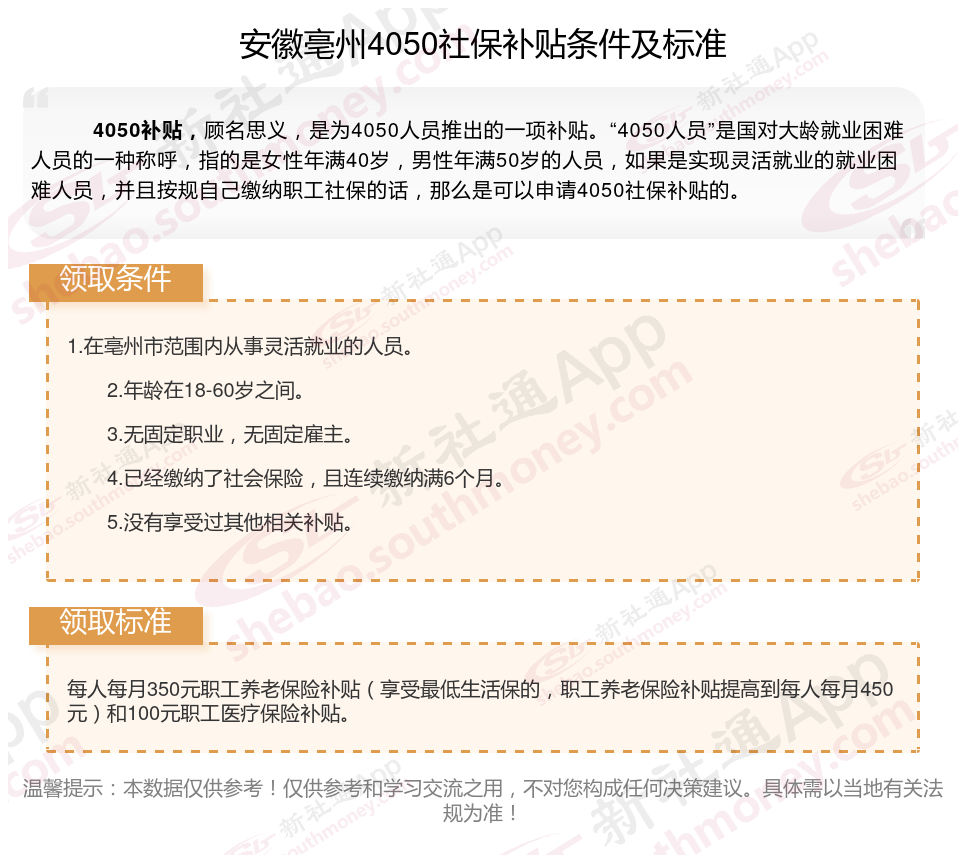二、安徽亳州4050社保补贴多少钱一个月?安徽亳州4050社保补贴2025年最新标准是多少?