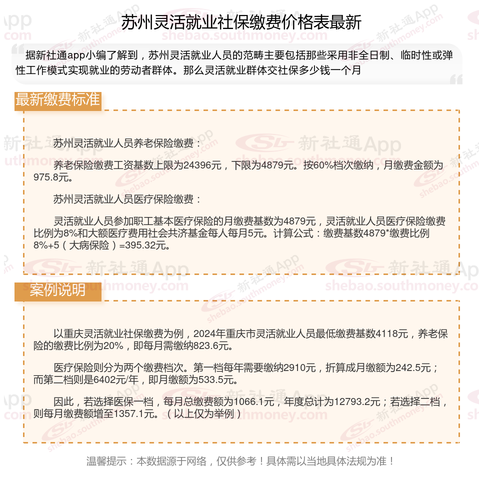 一、苏州2024-2025年个体及灵活就业人员社保养老保险缴费标准(苏州自费社保价格表)
