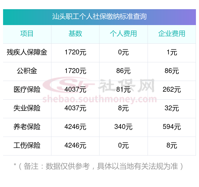 汕头社保缴纳比例是多少?2025年汕头社保缴费多少钱?下表是2024-2025年汕头社保费用明细参考,新社通app-社保缴费查询工具提供的最新数据如下: